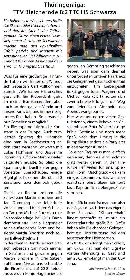 - 29.11.2022: „TTV schließt starke Hinrunde erfolgreich ab“ (Thüringer Allgemeine, JPG)